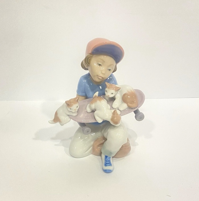 LLADRO “Little Riders” Boy with Skateboard Kittens Porcelain Figurine 07623 MIB quantity